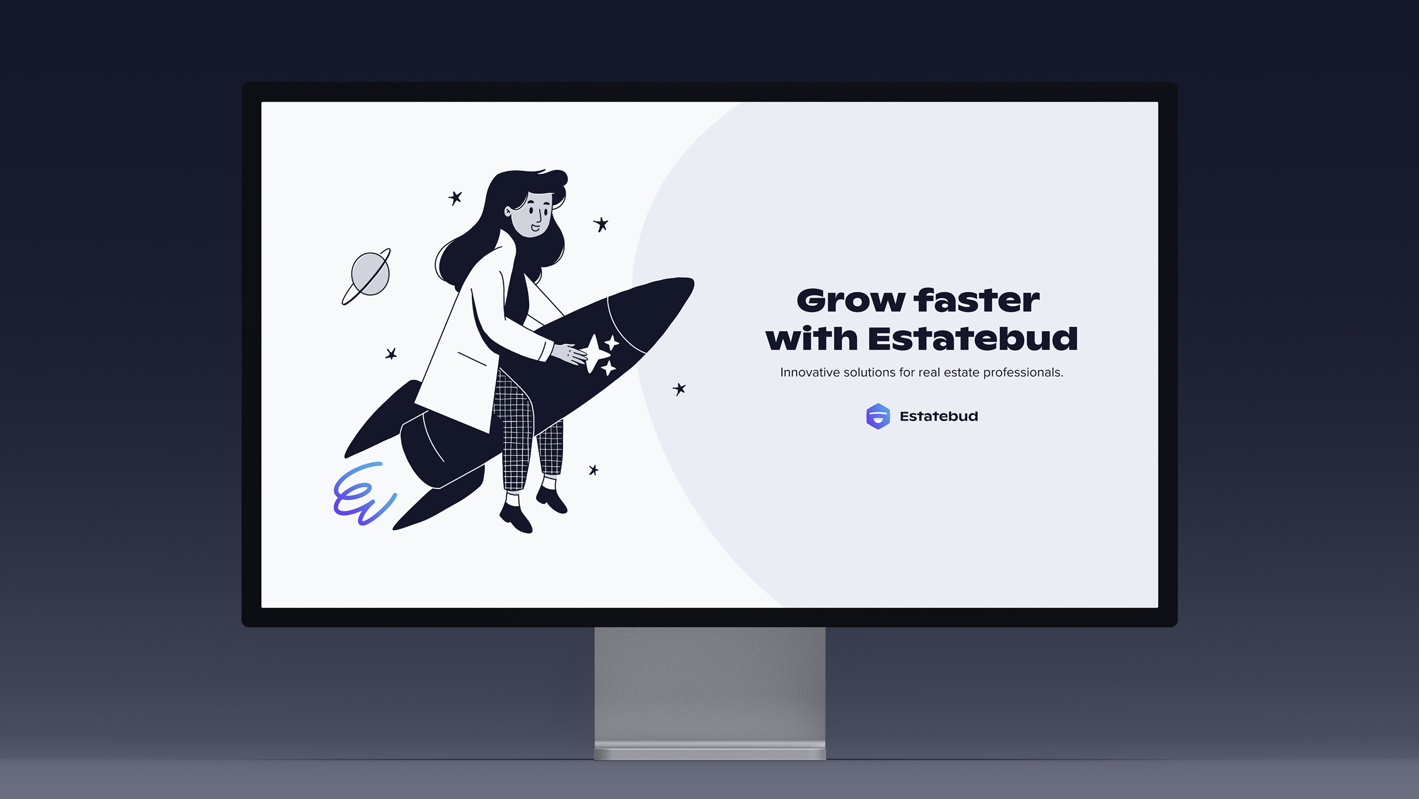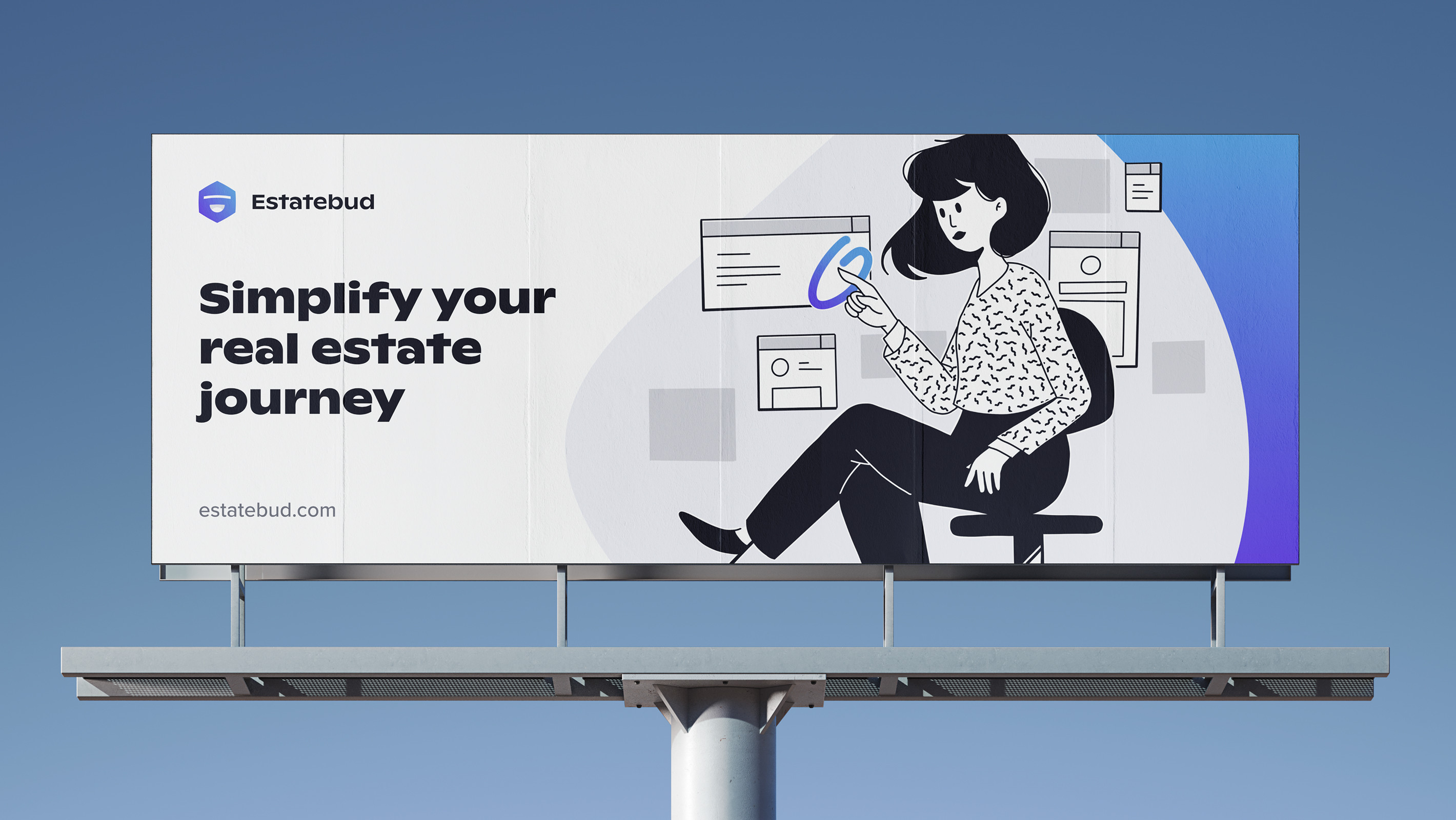 The illustrations for Estatebud use a unique hand-drawn approach to bring a friendly, human dimension to the brand. They serve as a warm visual contrast to the complex technology, ensuring the serious nature of the software doesn't feel overly strict or intense. This visual language brings simplicity and personality to key communication assets.