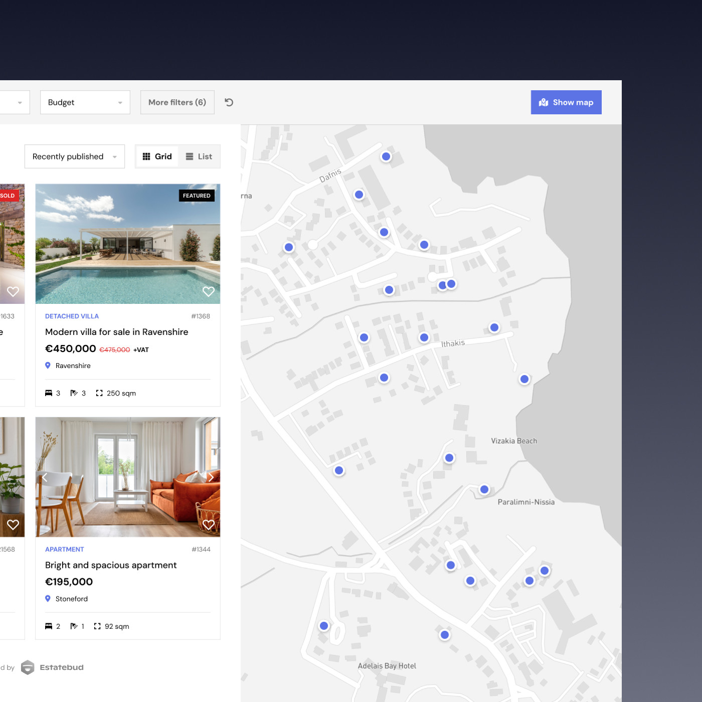 The official Estatebud Connect plugin transforms any WordPress website into a fully-featured real estate website. It is equipped with advanced customization options, interactive maps, real-time data synchronization, and much more. The plugin showcases property listings in an informative and clear way, captures lead details and automatically inserts them into the CRM.