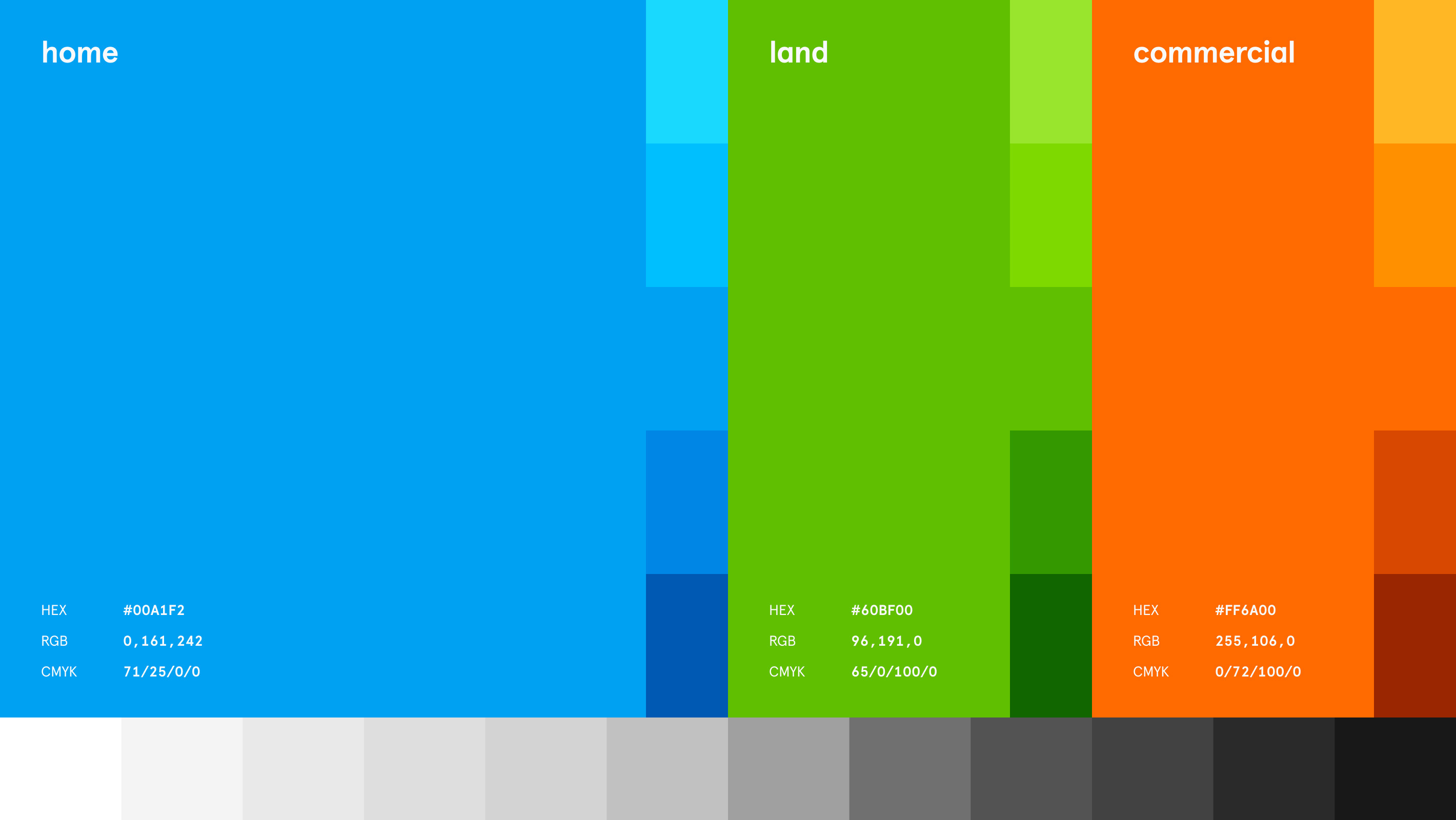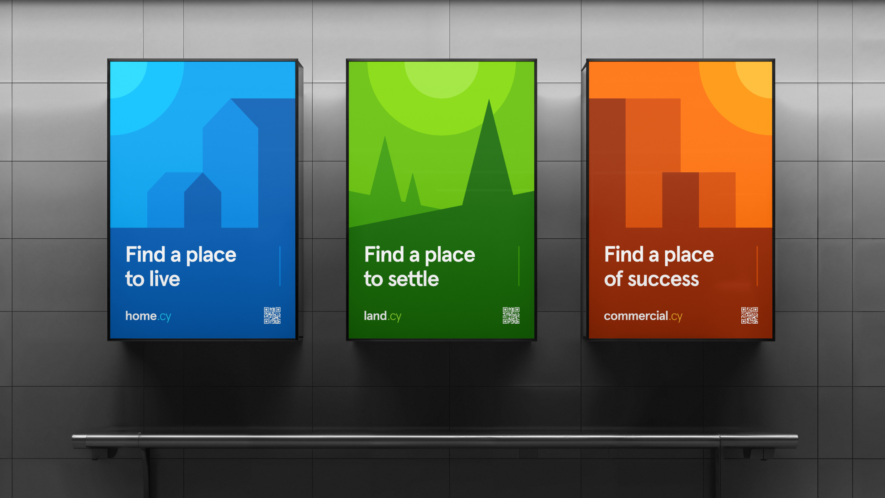 The home.cy ecosystem, which includes land.cy and commercial.cy, operates under a single, unified brand designed for immediate recognition and trust. The strength of this brand is rooted in its cohesive visual identity: a consistent color palette and logo structure is maintained across all three platforms. This consistency is refined through imagery that aligns with each segment: home.cy represents a charming residential neighborhood, land.cy speaks to nature and untamed space, and commercial.cy reflects the sharp design of professional buildings.