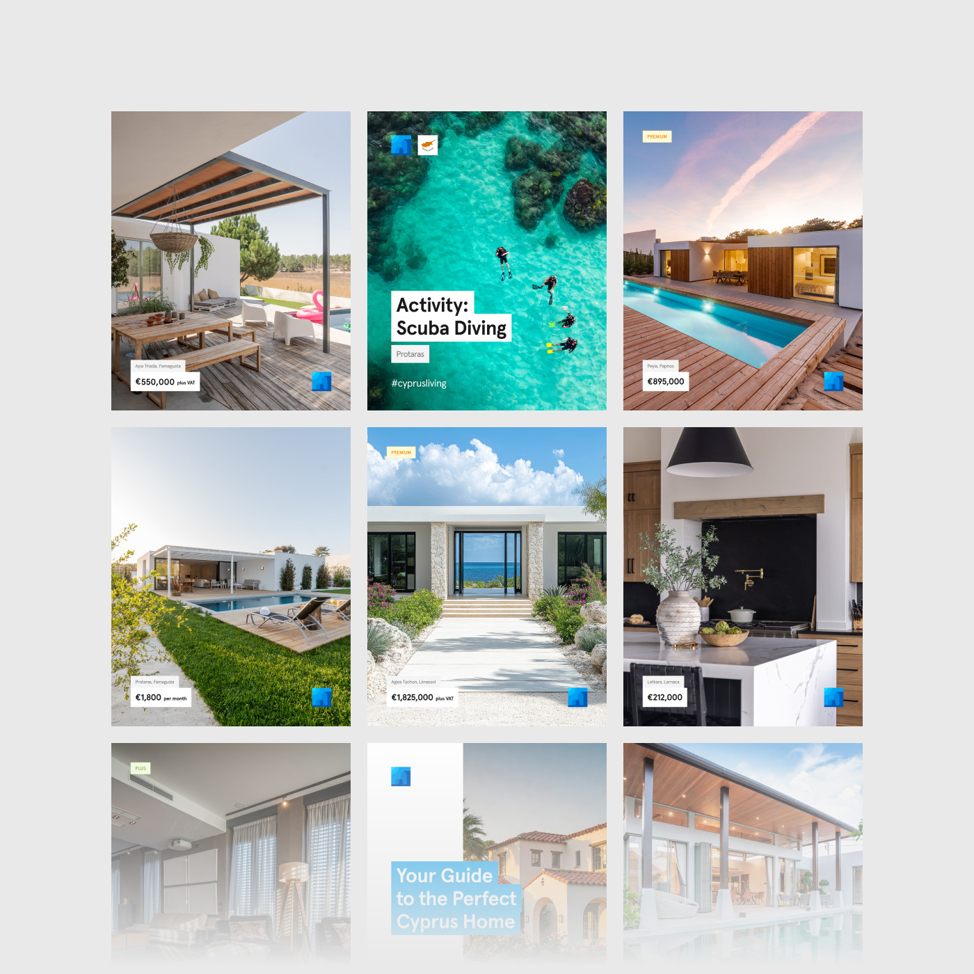 For home.cy, we developed a social media strategy that highlights the best of Cyprus real estate while reflecting the lifestyle that surrounds it. Our content showcases beautiful homes and investment opportunities, complemented by insights into Cyprus living — including top places to live, things to do, and local highlights. Through engaging storytelling, exciting giveaways, and updates about events across Cyprus, we have built a social presence that feels authentic, vibrant, and connected.