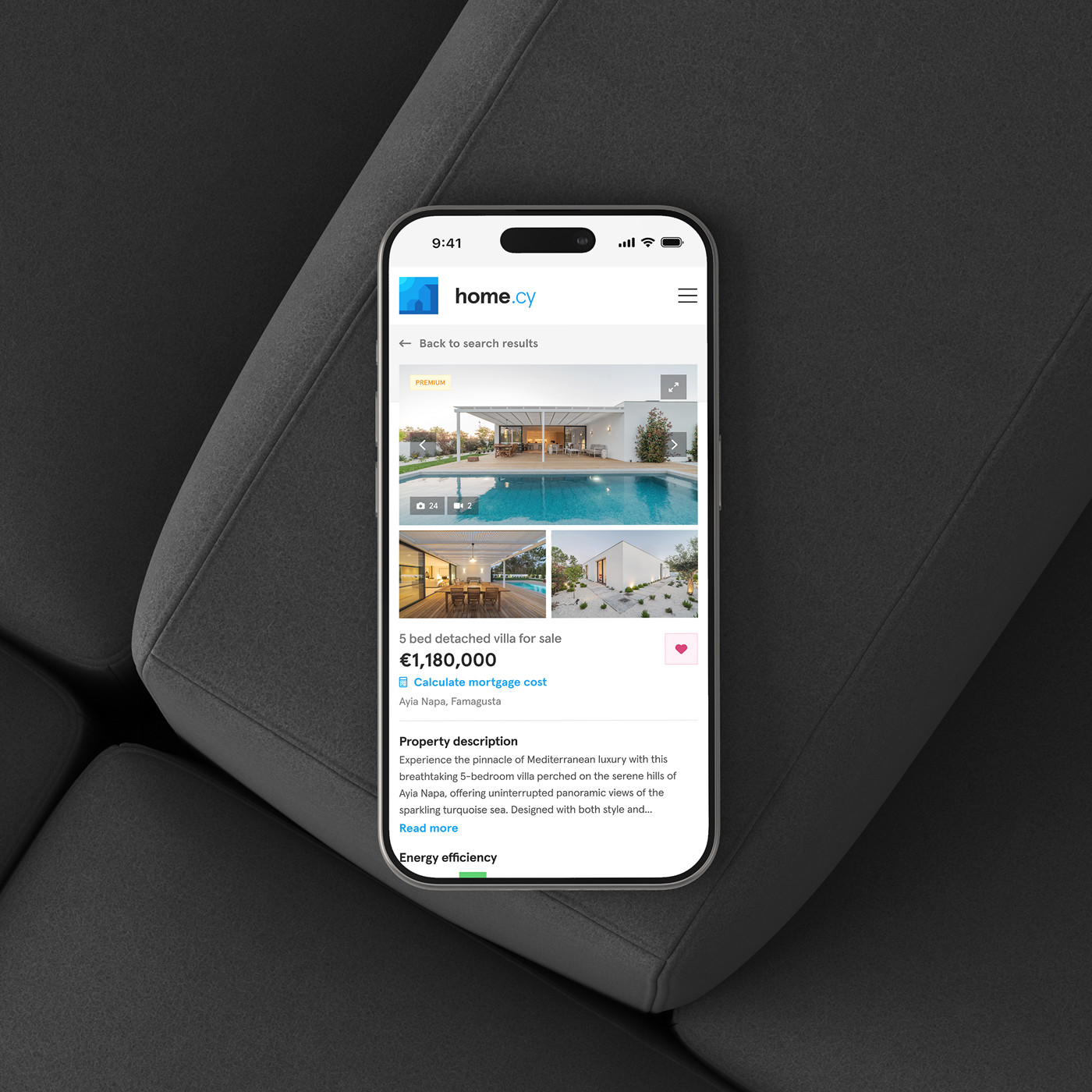 Home.cy is a modern real estate platform focused on experience, equipped with intelligent tools and features that make finding homes in Cyprus effortless.
